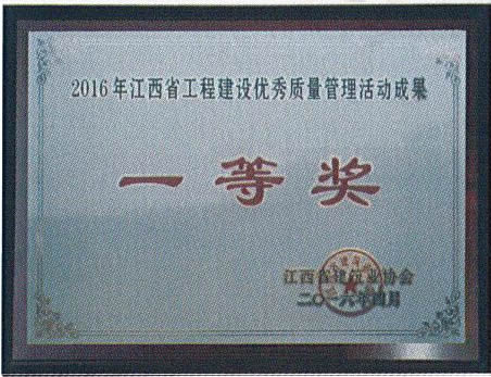 江西省工程建設(shè)優(yōu)秀質(zhì)量管理活動(dòng)成果一等獎(jiǎng)