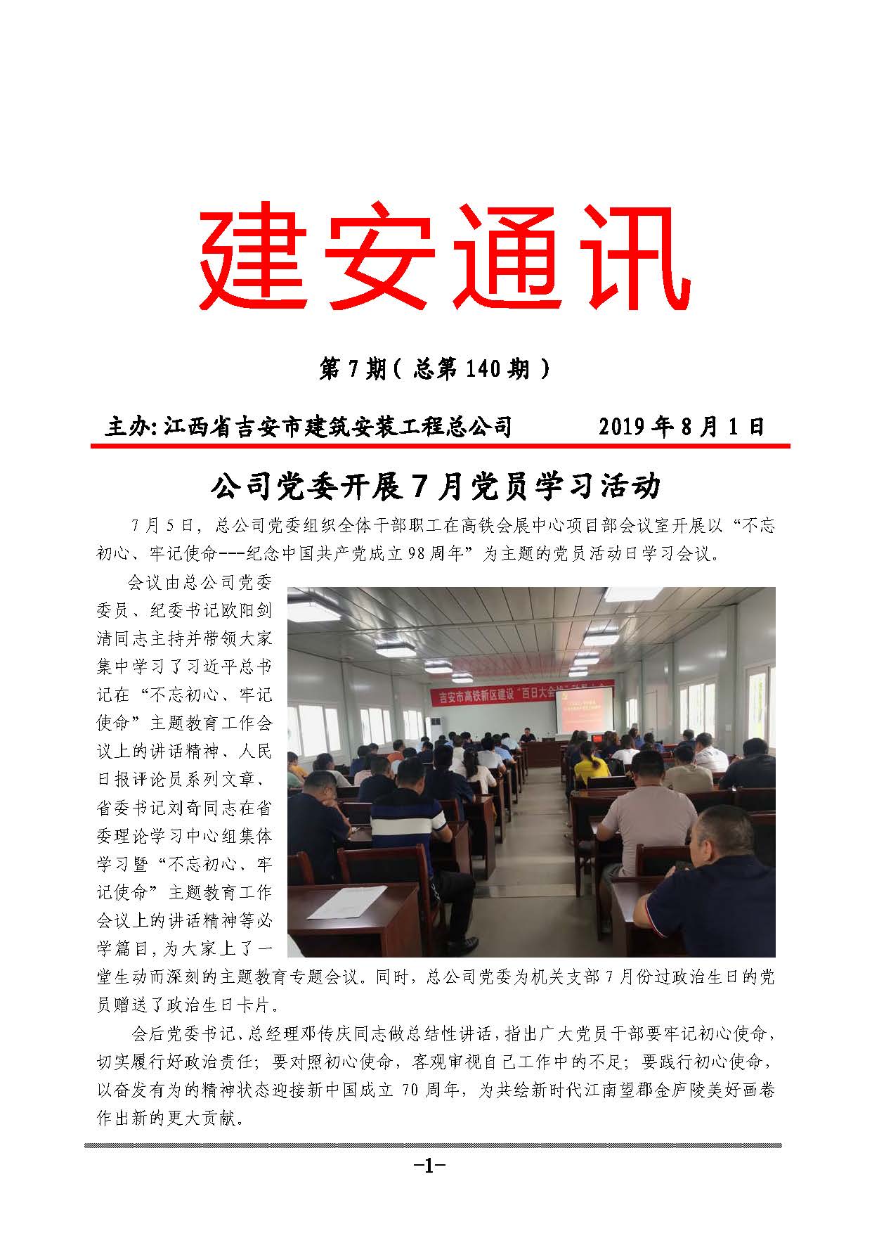 建安通訊( 2019年第7期 總第140期 )